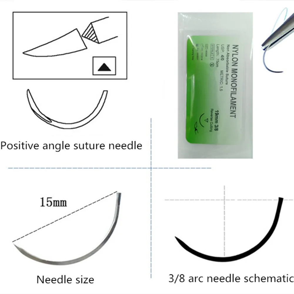 12 шт 75 см медицинская нить иглы с резьбой шовный материал 4/0 нейлон Мононити для обучения для практики наложения швов набор инструментов