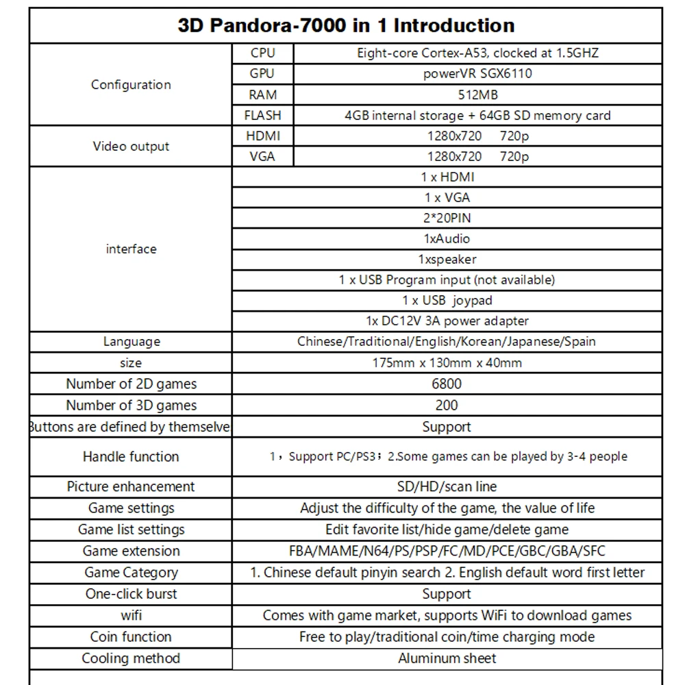 Новинка 3D Box WIFI функция 7000 в 1 игры HD Ретро аркадная печатная плата USB джойстик материнская плата адаптер Jamma кабель сна