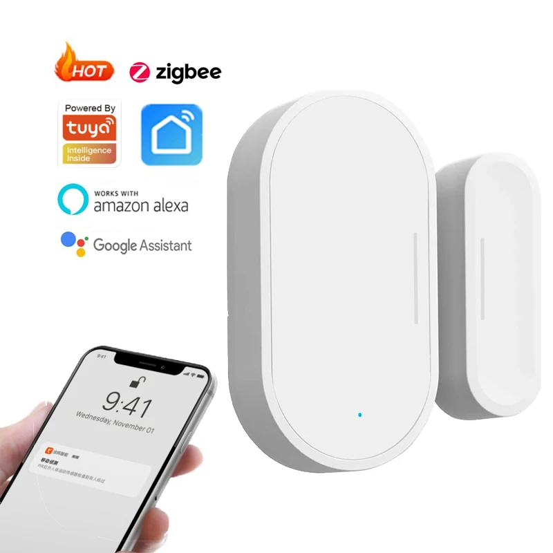 Умный датчик открытия окон и дверей, автоматизация домашней безопасности, Поддержка приложения Tuya Smart Life, сигнализация в режиме реального времени, Alexa Google Home Voice,Zigbee Hub