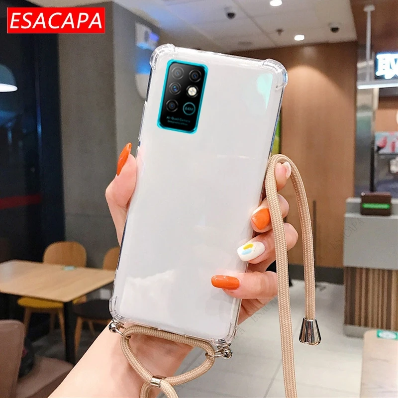 Чехол для телефона с цепочкой и ожерельем для Infinix Note 8 Zero 8i Smart 5 X683 X687, мягкий ударопрочный чехол из ТПУ с ремешком на шею и шнурком