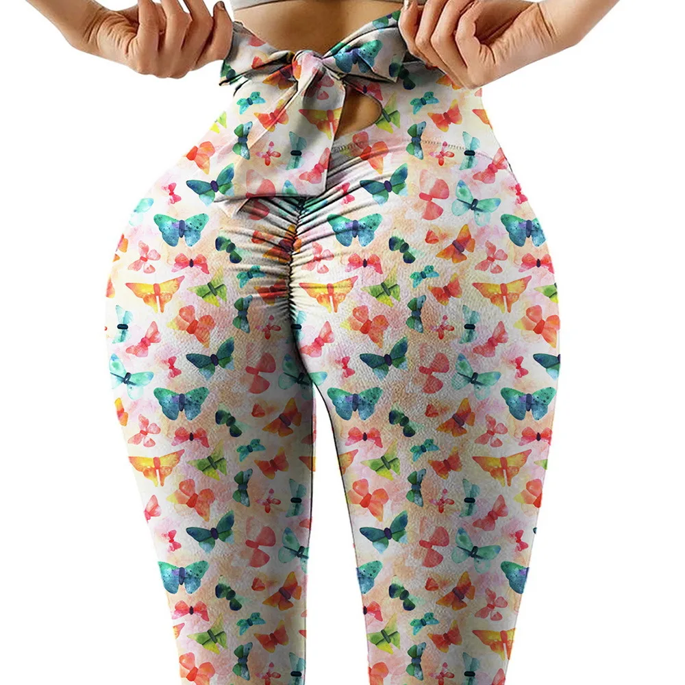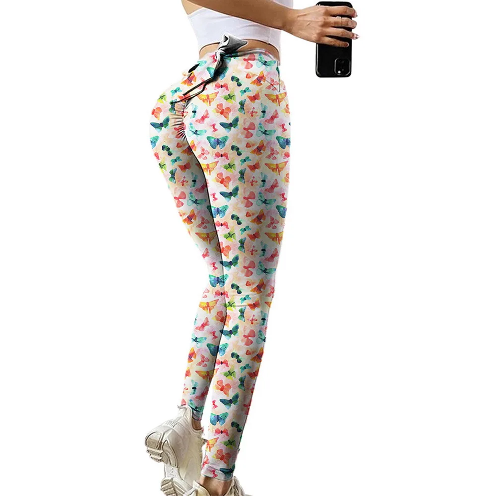 Женские Леггинсы для йоги с пуш-ап и бантом в горошек, спортивные Леггинсы для фитнеса и йоги, спортивные облегающие для тренировок с высокой талией, 2021