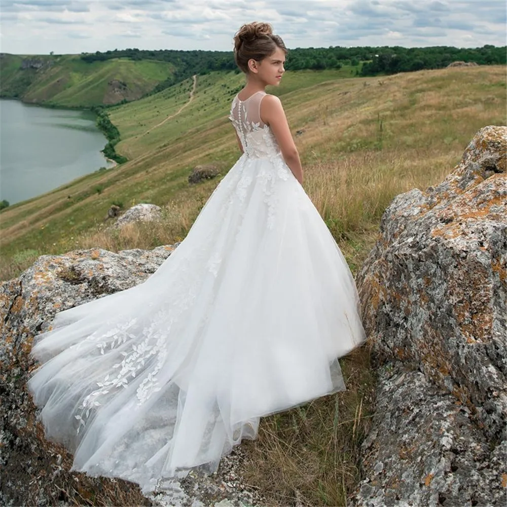 Кружевные Платья с цветочным рисунком для девочек, для первого причастия, детское свадебное платье, одежда для малышей, для дня рождения, для особых случаев
