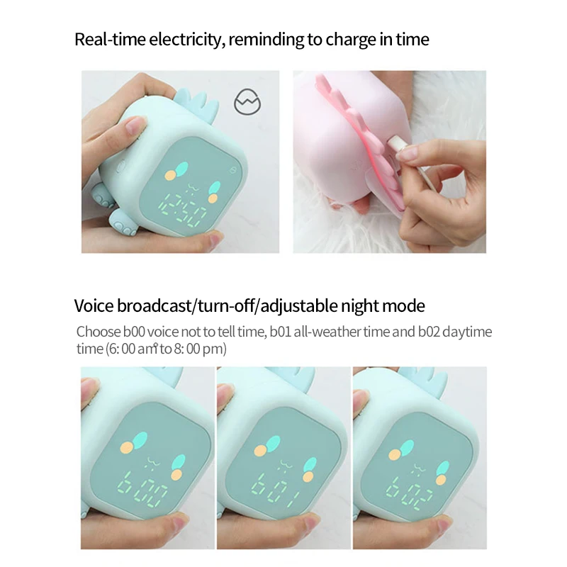 Детский будильник милый цифровой будильник с динозавром для детей, прикроватные часы с регулировкой температуры и голосовым управлением, будильник, светильник, часы