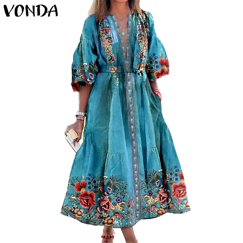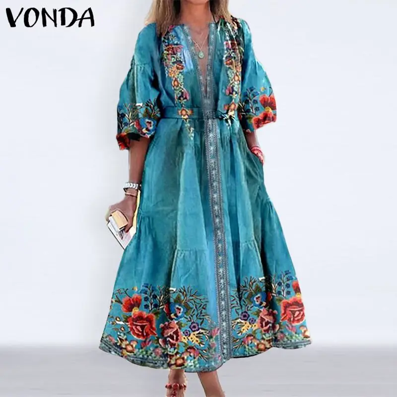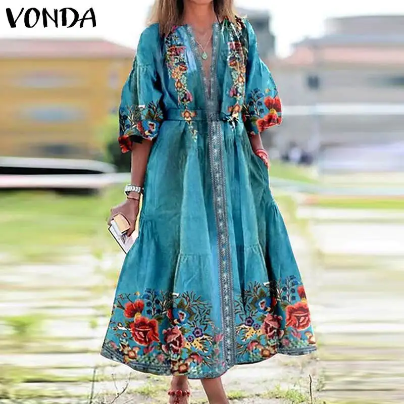 Осеннее платье-макси 2021 VONDA, винтажное пляжное платье с длинным...