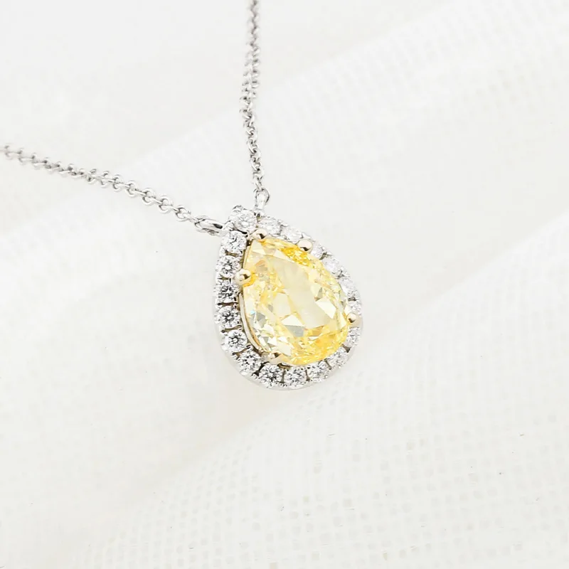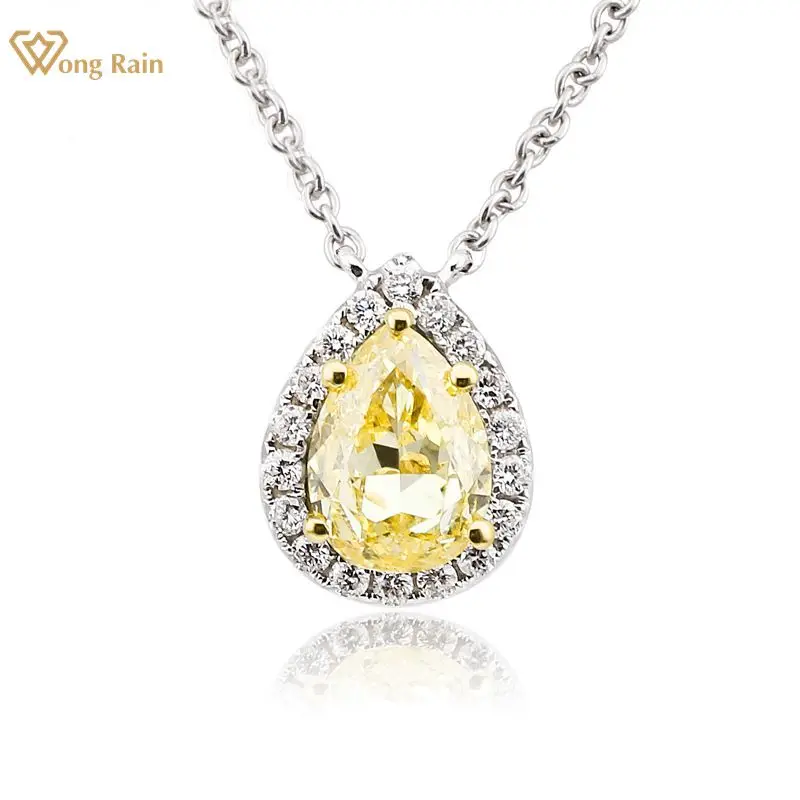 Wong Rain 100% 925 стерлингового серебра Серебряная груша создано муассанит драгоценный камень свадебное обручальное ожерелье подвеска ювелирные изделия оптом