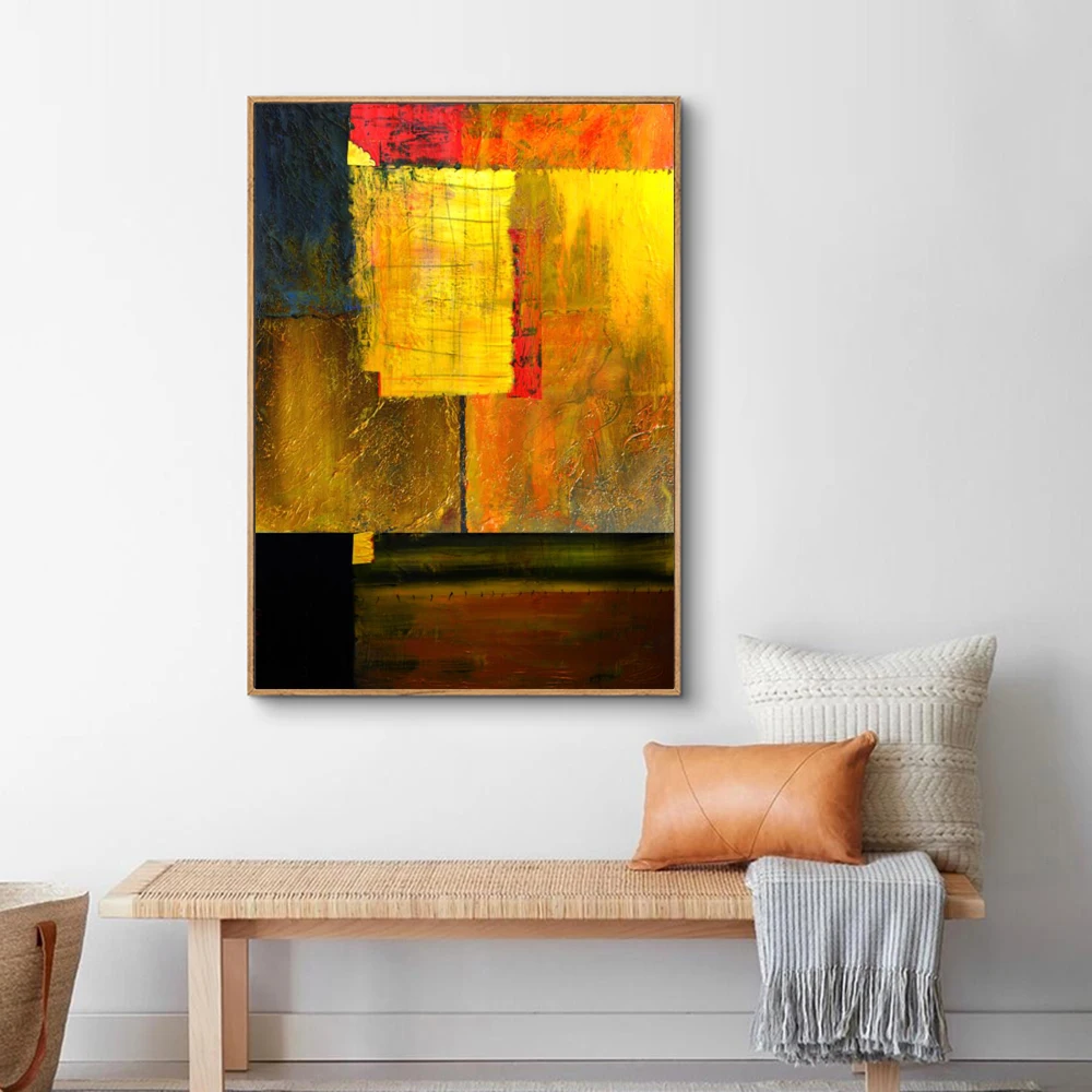 Simple Abstract Canvas PaintingGolden Abstract Art Picture