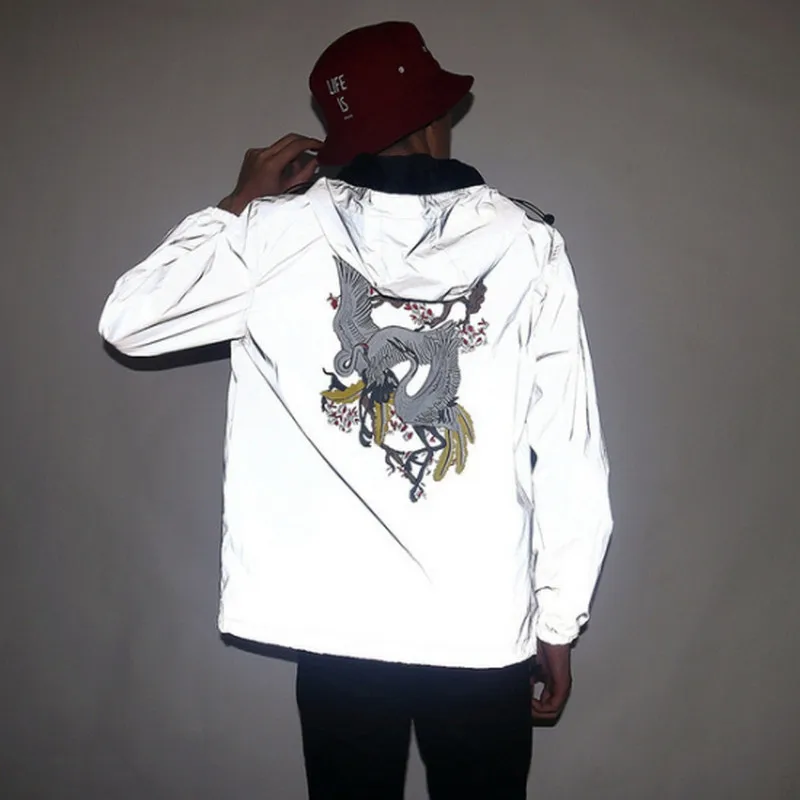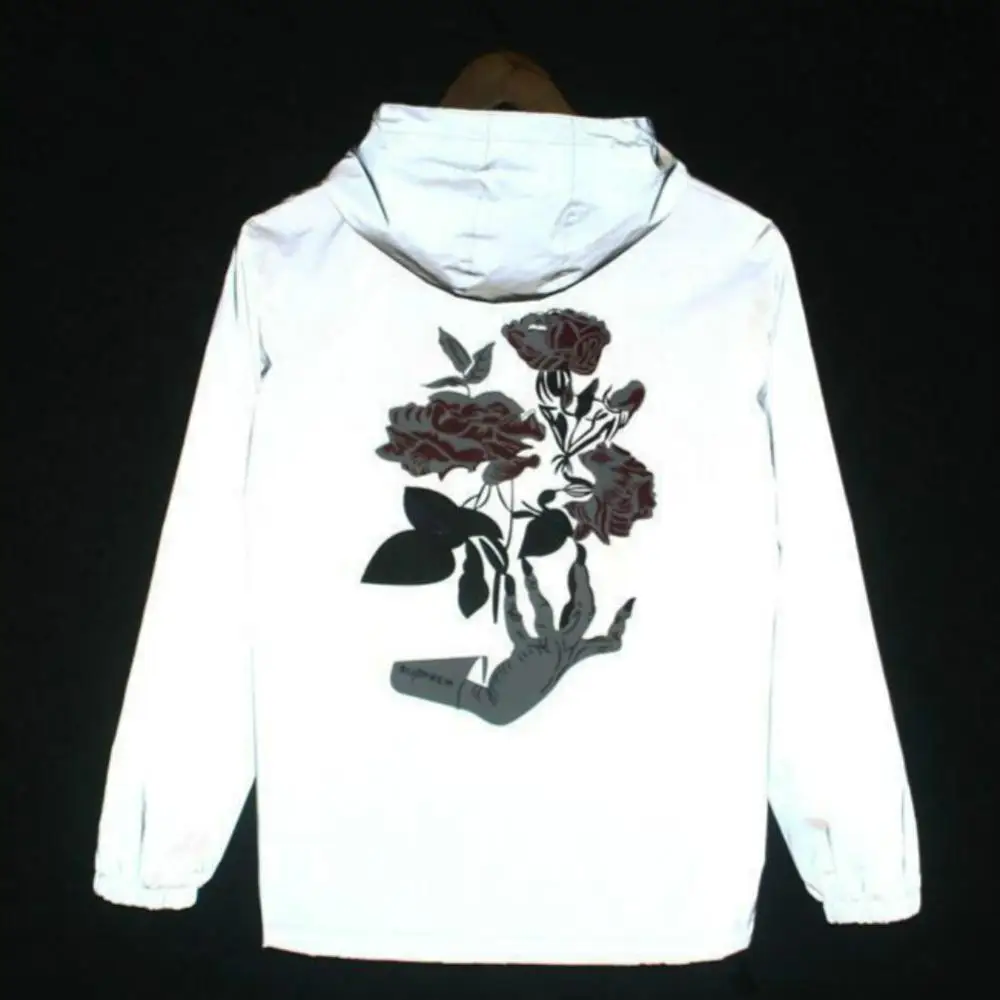 Ветровка Светоотражающая МужскаяЖенская, модная повседневная куртка с капюшоном в стиле хип-хоп, уличная одежда в стиле Харадзюку, 5XL, на весну