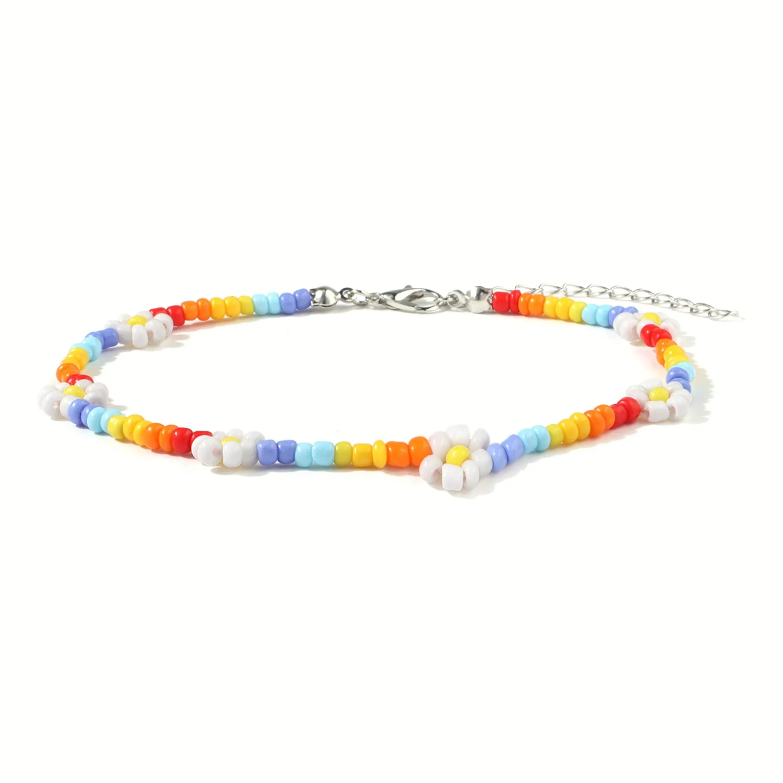 Модный разноцветный акриловый бисер цветок ножные браслеты для женщин богемные винтажные геометрические пляжные ножные браслеты для йоги ювелирные украшения подарок
