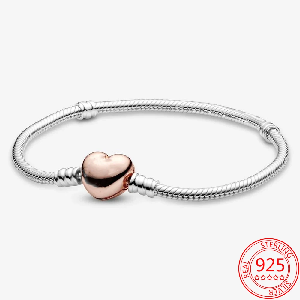 Браслет женский из серебра 925 пробы с фиксацией в виде сердца