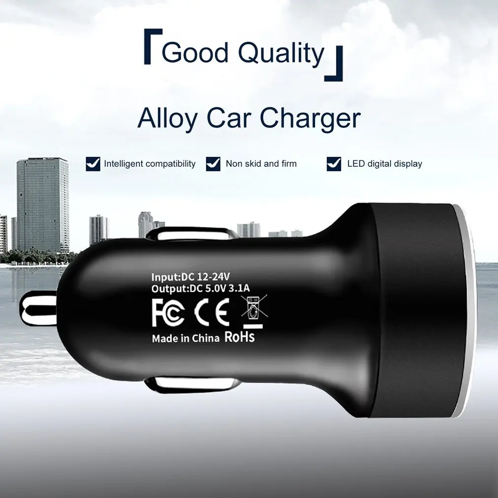 3.1A устройство для автомобиля с двумя портами USB Зарядное устройство с светодиодный Дисплей Универсальный мобильный телефон Зарядные устройства для автомобиля Зарядное устройство s адаптер быстрой зарядки