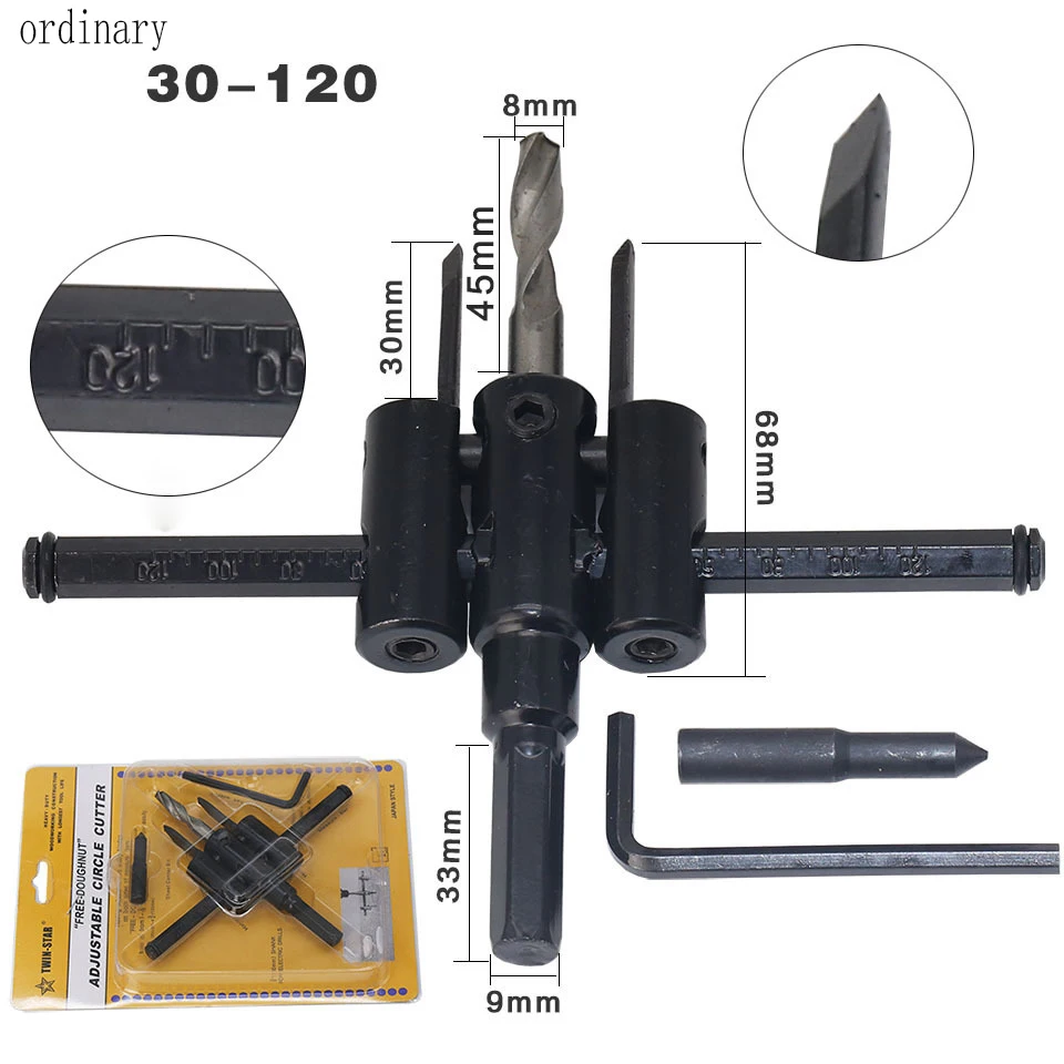 Регулируемая круглая фреза для отверстий, деревянная зеркальная пила для самолета, инструмент для украшения, 30-120200300 мм