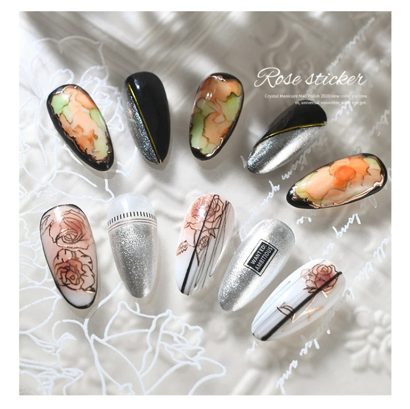 3 вида стилей 3D виниловые наклейки на стену с рисунком "полые розы, цветы лазерные блестки творческий с клей типа сделай себе сам дизайн ногтей, украшения патч инструмент