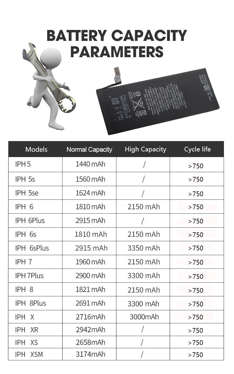 Вопросы и ответыВ1: Есть ли более 2000 мАч?О1: Емкость почти соответствует заявленной емкости. Пожалуйста, покупайте бесплатно.Клиент 1: взял 2200 мАч, тест 1960 мАчКлиент 2: взял 2200 мАч, тест 2229 мАчКлиент 3: взял 3400 мАч для IP 6 plus, тест около 3700 мАч. При зарядке с 7 до 100%, показал 3100 мАч.