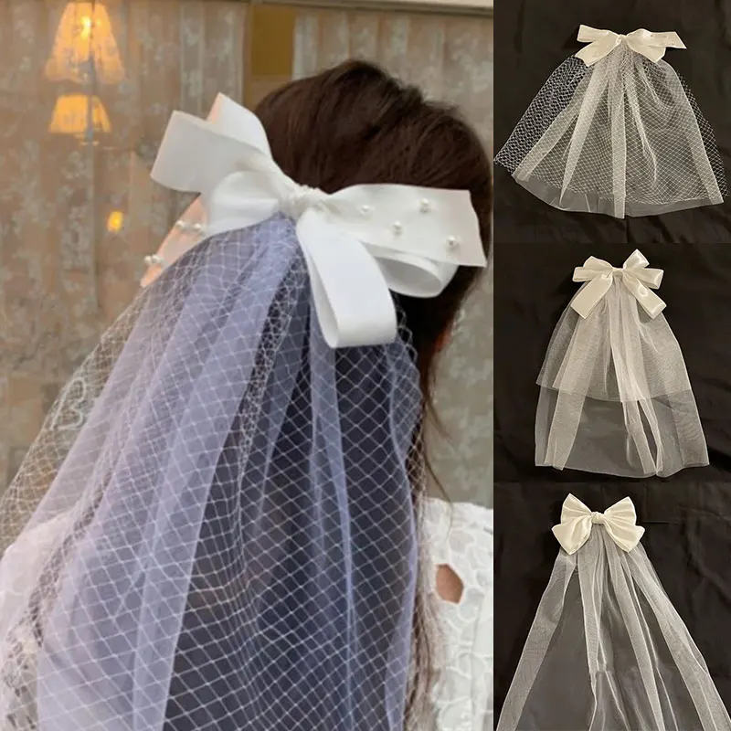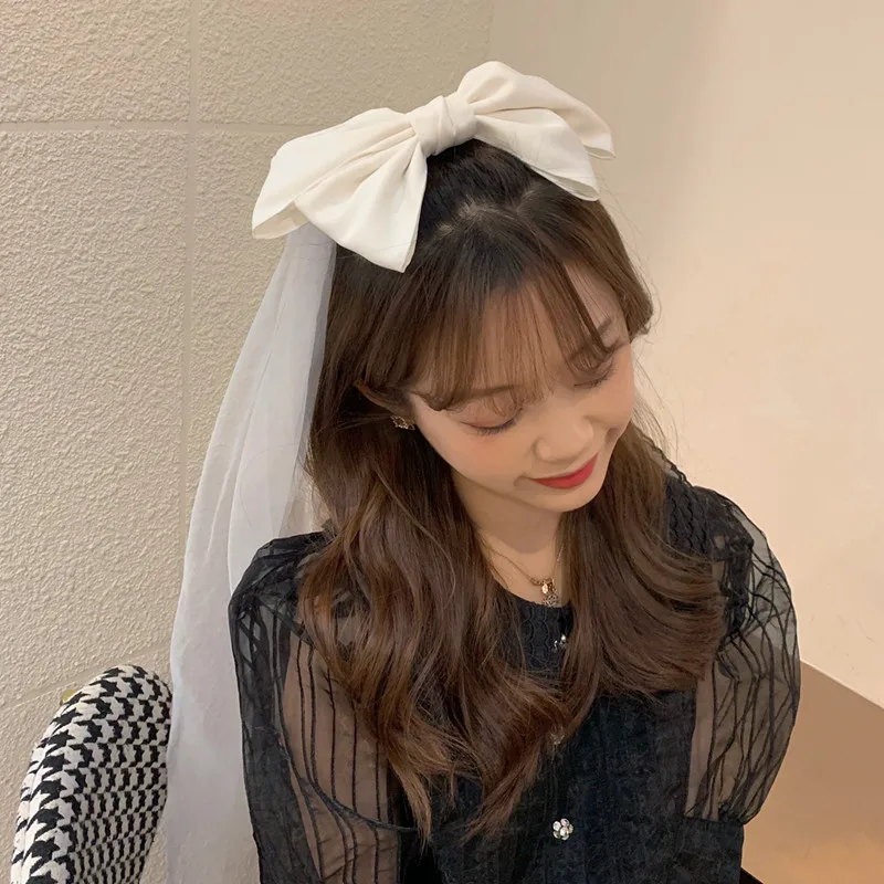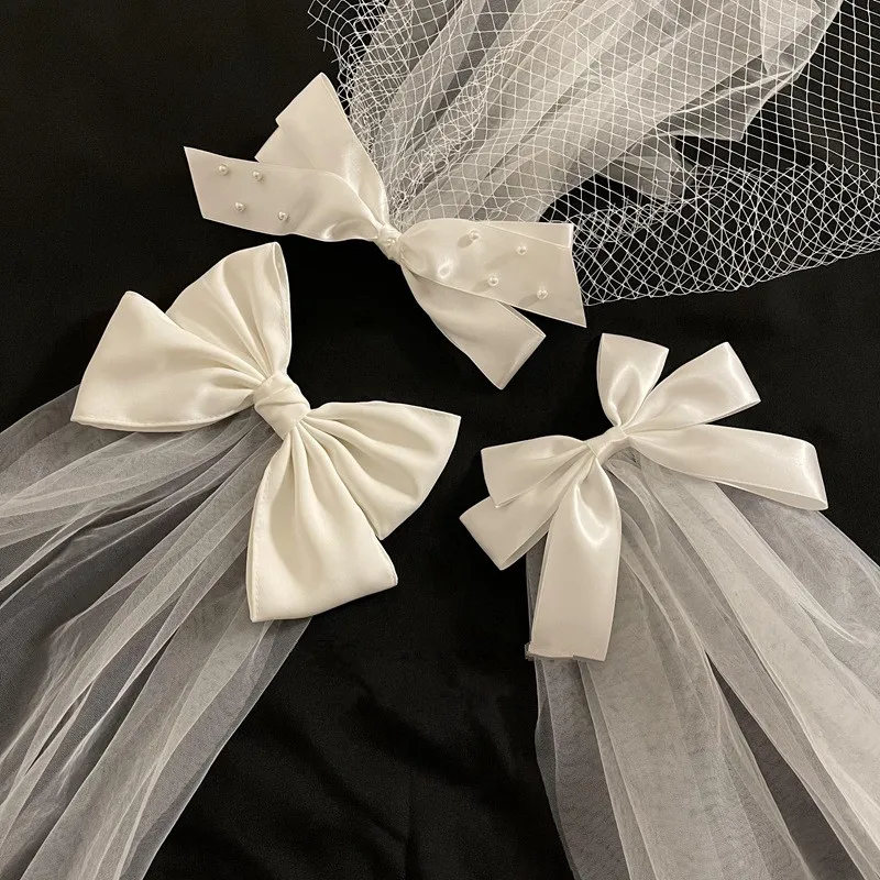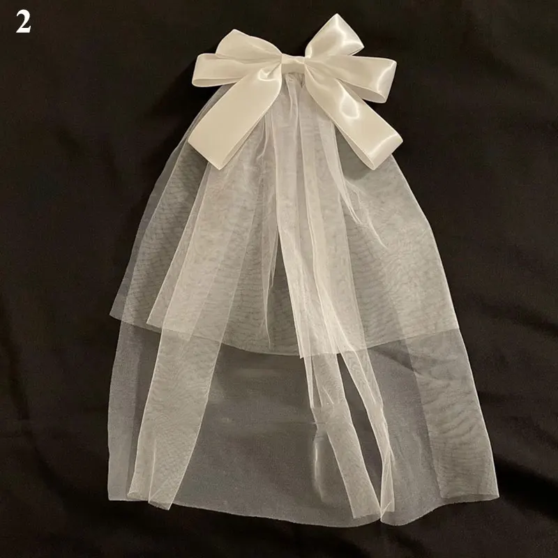 Фотография реквизит головной убор белый бант вуаль шпилька Длинные ленты большой заколки-пряжки свадебные аксессуары для волос