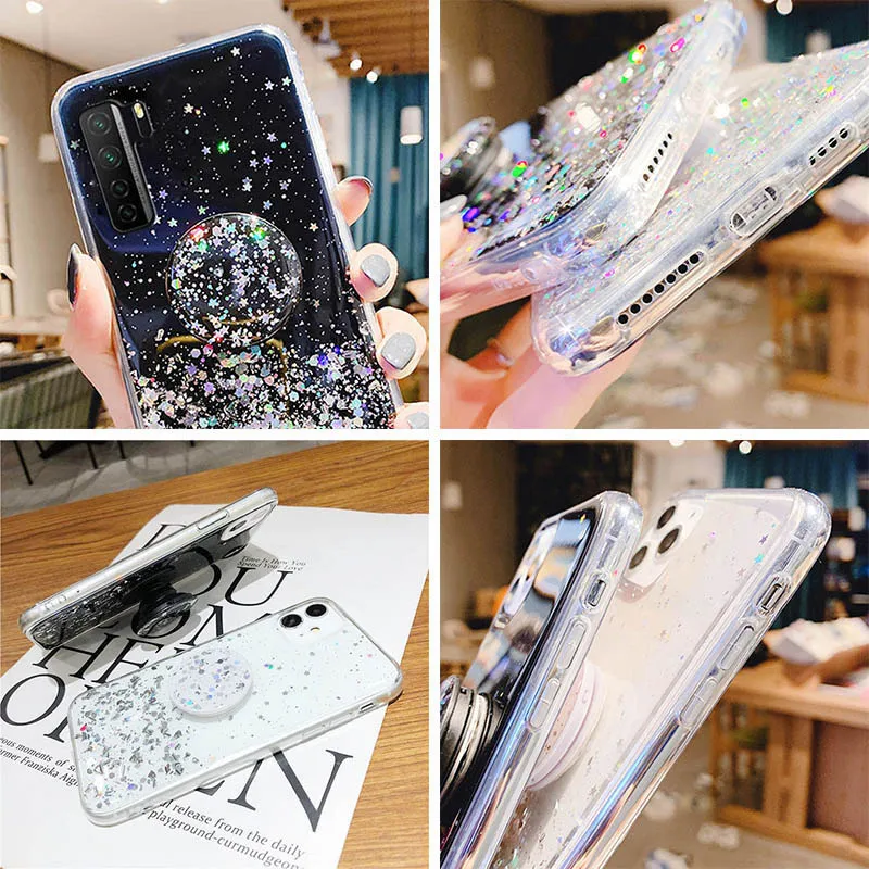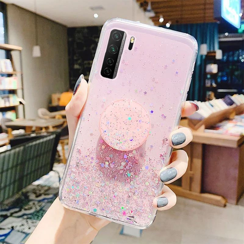 Блестящий чехол со звездой и держателем для Huawei P Smart 2021 Y7A P Smart 2020 2019 P Smart Plus 2018, мягкая задняя крышка телефона