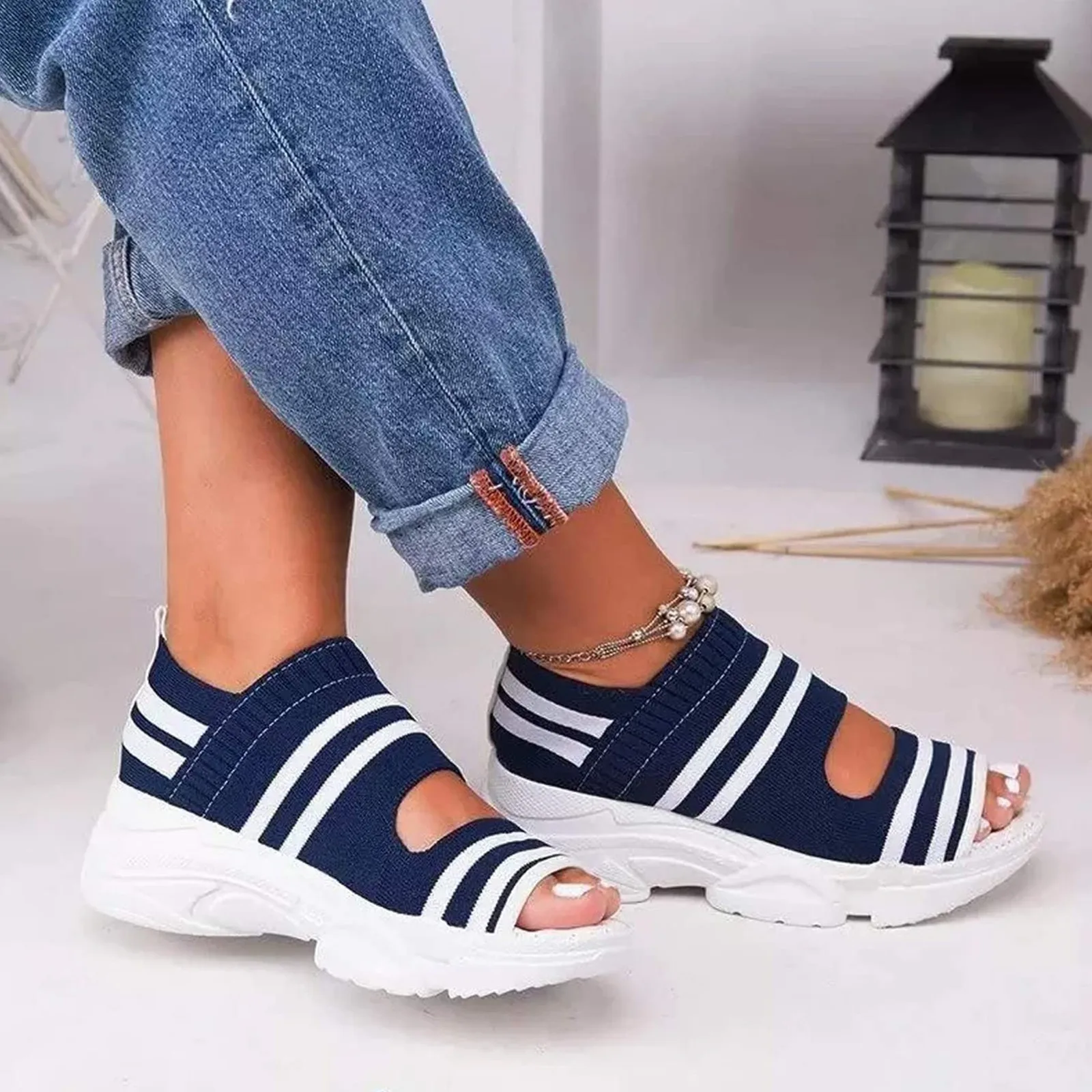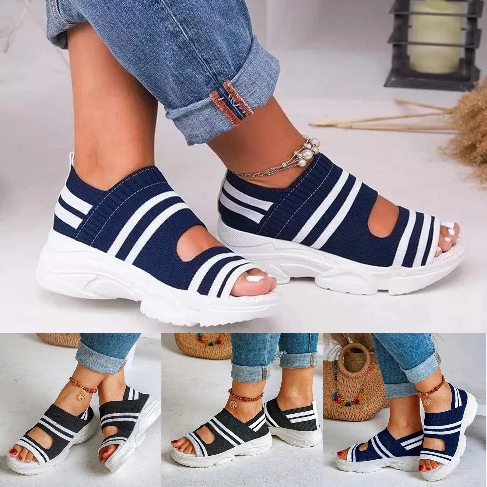 Модные женские летние повседневные спортивные удобные сетчатые сандалии в полоску эластичные сандалии на плоской платформе пляжная обувь Zapatos De Mujer # g3
