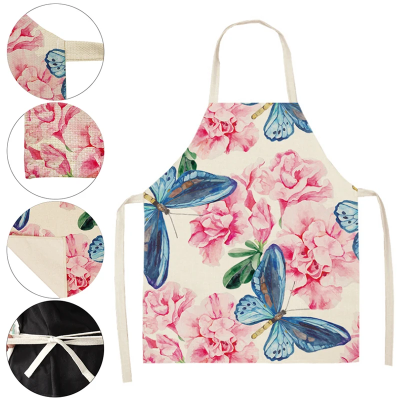 1 шт. фартуки из хлопка и льна с принтом бабочки для женщин нагрудник на талию для домашней кухни для готовки выпечки инструменты для уборки фартук для готовки