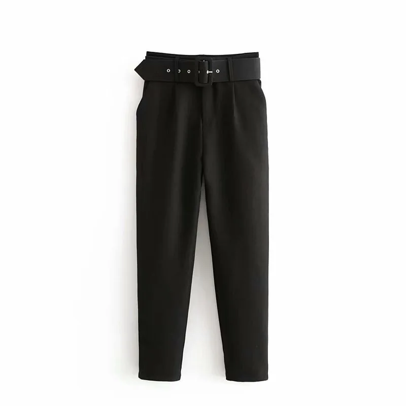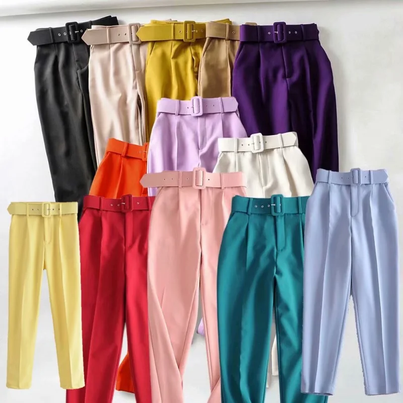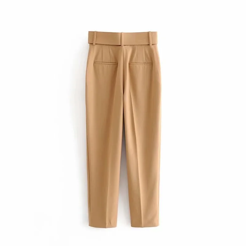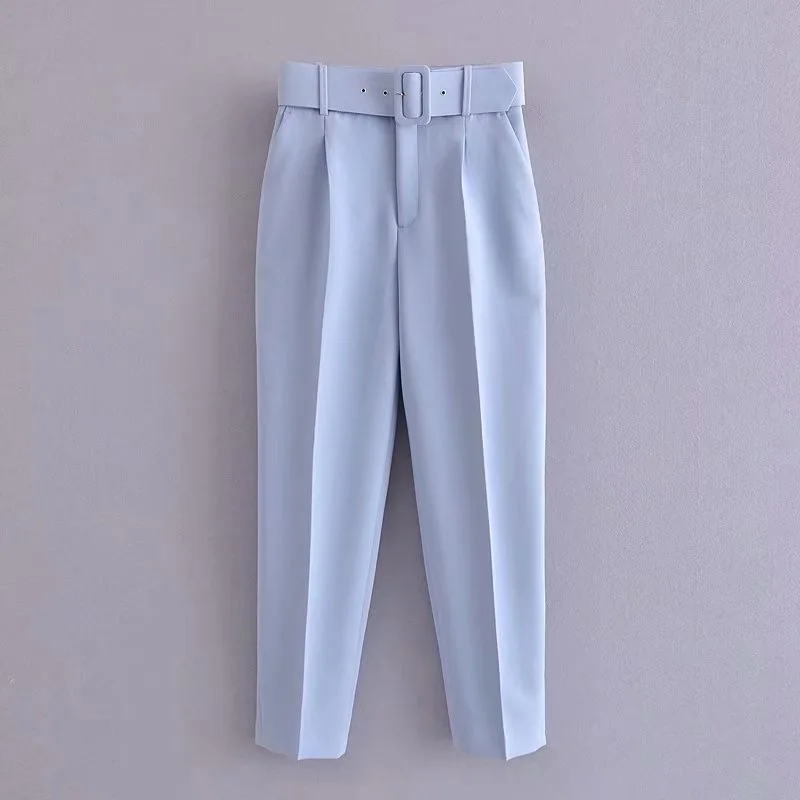 2021 Простые Модные повседневные брюки в европейском и американском стиле с поясом, модные деловые брюки, женские ретро штаны с имитацией молнии