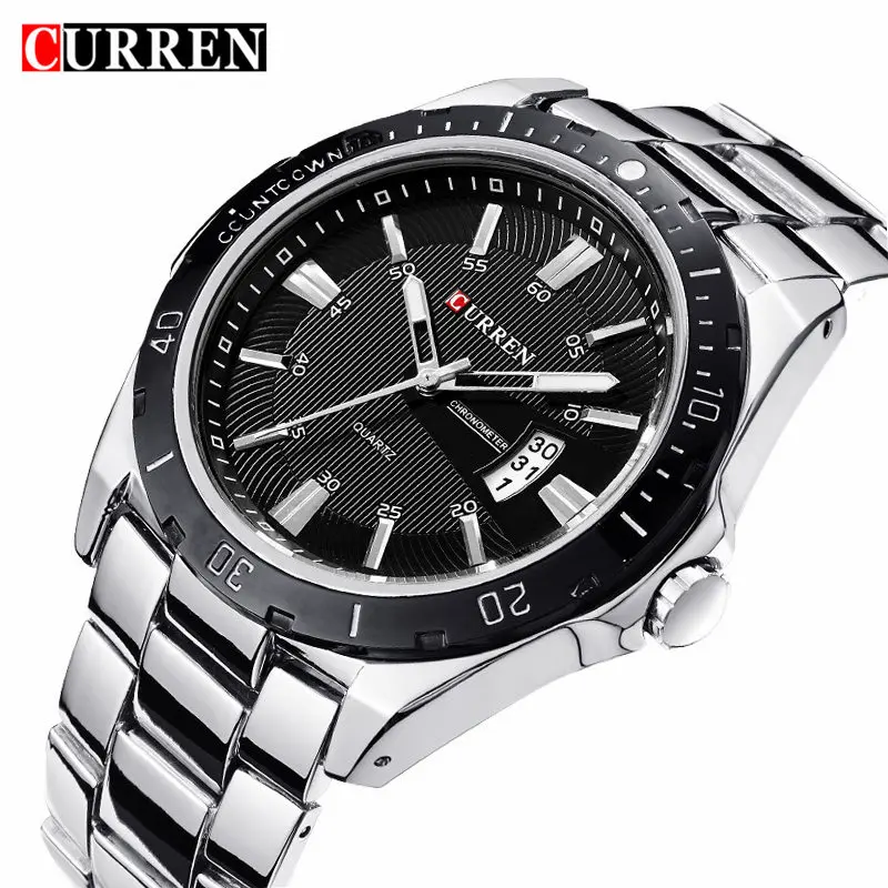 Часы наручные CURREN Мужские кварцевые, модные деловые повседневные спортивные полностью стальные, с календарем