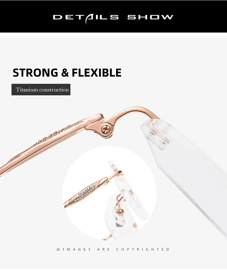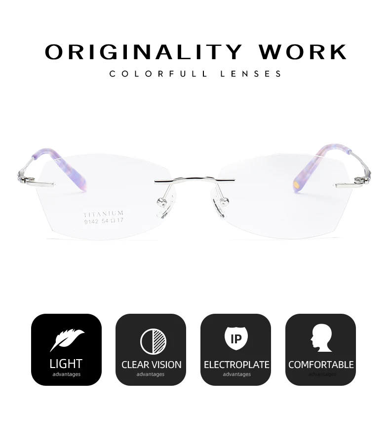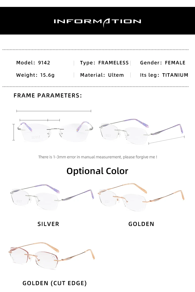 Женские очки без оправы ZIROSAT, оправа для очков с алмазной резкой из чистого титана, 9142