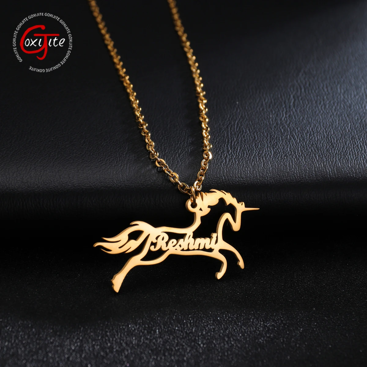 Ожерелье Goxijite с именем единорога, из нержавеющей стали