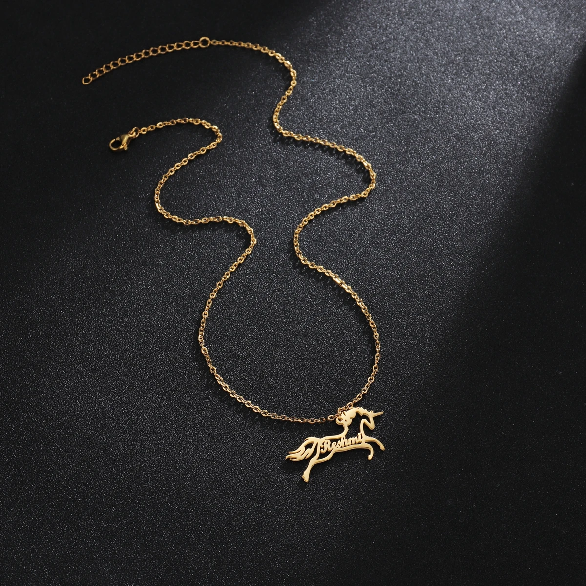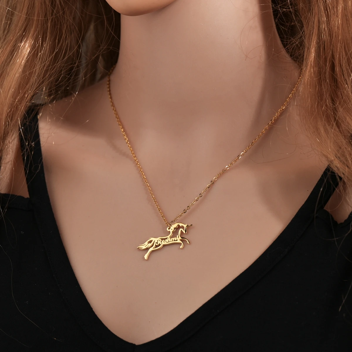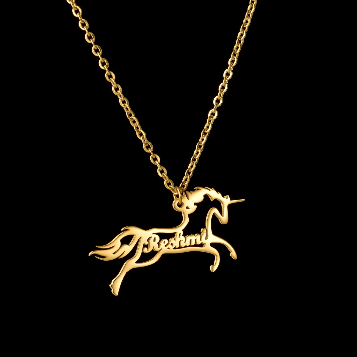 FeatureLink chain, Zodiac Horse name necklace,hollow unicorn name necklace