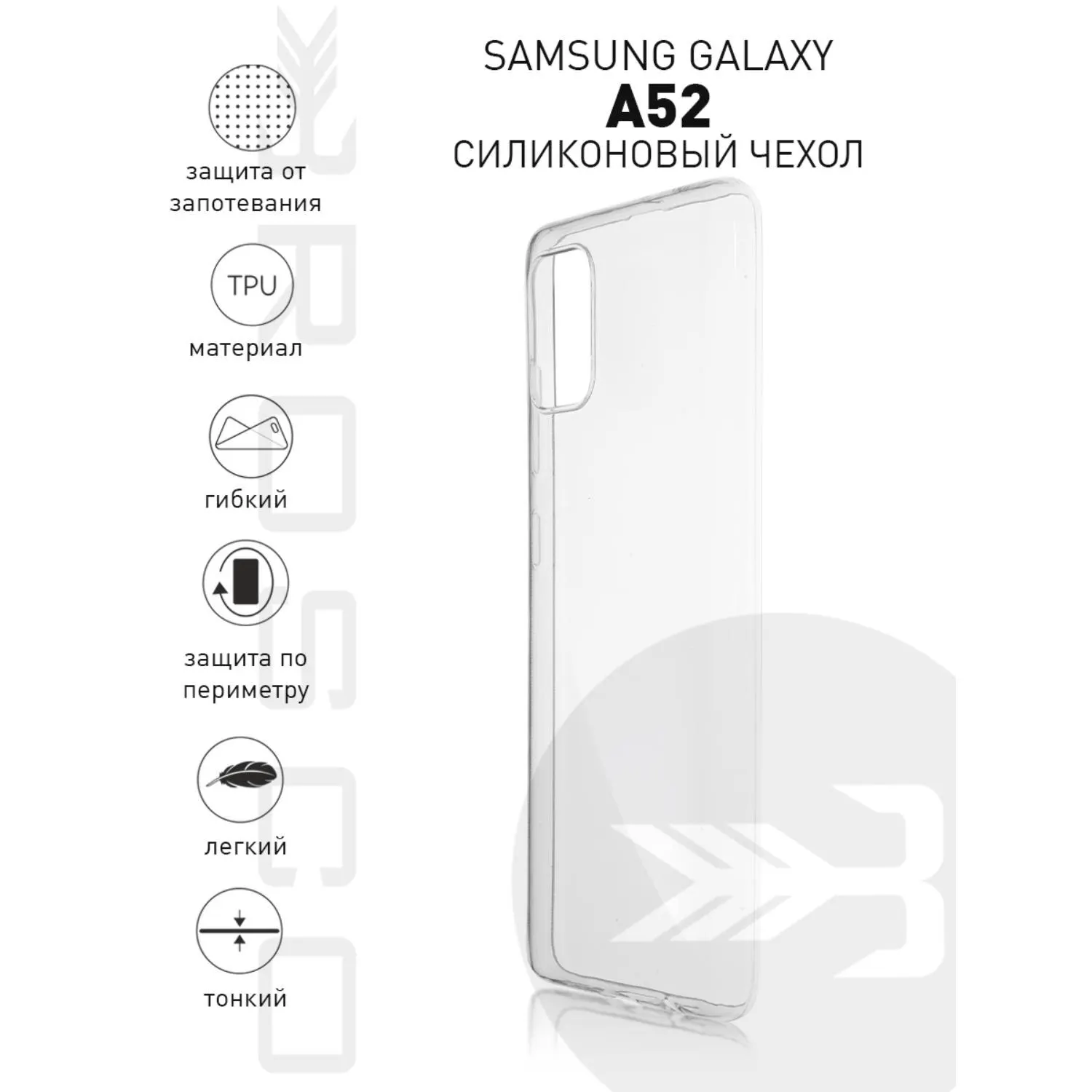Качественный силиконовый чехол ROSCO для Samsung Galaxy A52 с бортиком вокруг модуля камер и защитой от прилипания чехла