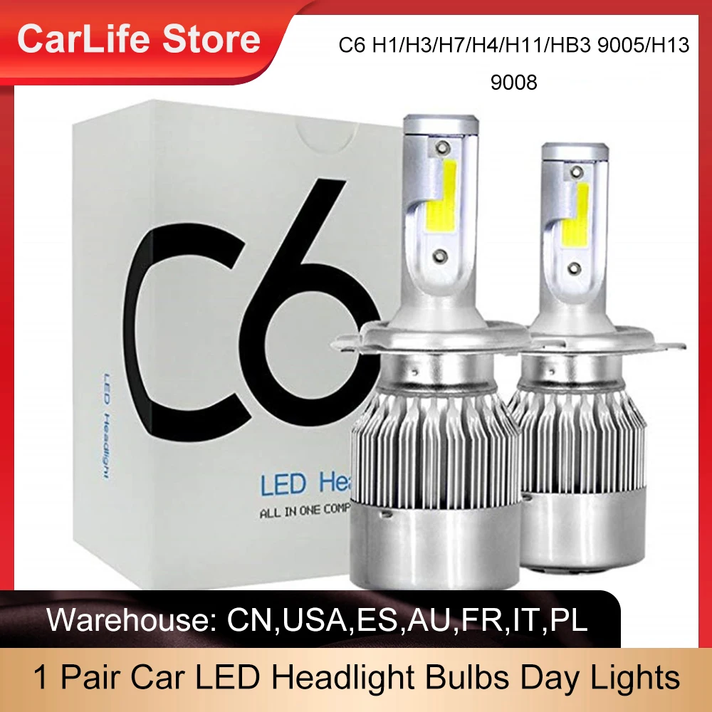Светодиодные лампы для головсветильник фонарей C6, лампы для автомобильных фар H1, H3, H7, s H4, 880, H11, HB3, 9005, H13, 9008, 6000K, 72 Вт, 12 Светодиодный, лм