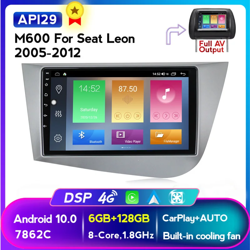 Автомобильное радио, 6G + 128G, Android 10, для Seat Leon 2 MK2 2005-2012, GPS-навигация, 4G, Wi-Fi, USB, Android, BT, Carplay, без CD, DVD-плеера