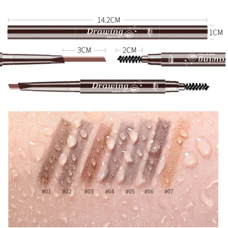 1 шт., карандаш для бровей с двойной головкой, с кистью, не цветущий, водонепроницаемый, стойкие пигменты, черный, 7 цветов, карандаш для бровей, косметика TSLM2