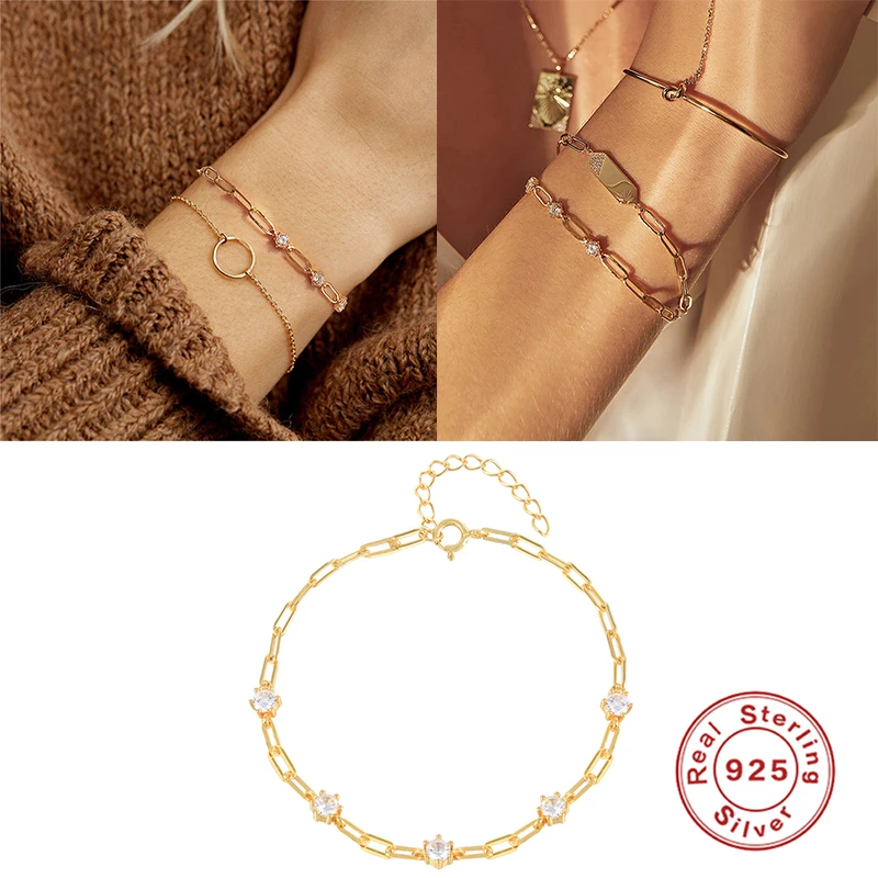 925 марка стерлингового серебра с цирконием, ювелирное изделие, цепочка браслеты для девушек и женщин, украшенные разноцветными кристаллами Шарм Браслет Браслеты Mujer