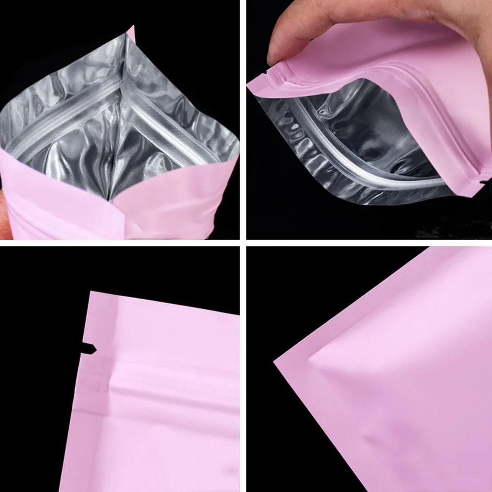 100 шт., матовые розовые пакеты из фольги майларовая, с застежкой-молнией