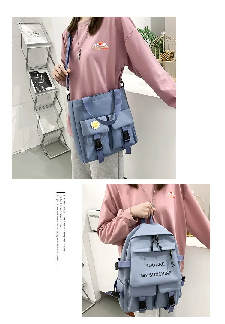Набор из 5 шт., милые школьные ранцы для девочек-подростков, женский рюкзак, холщовые дорожные сумки для студентов, сумки для книг, школьные ранцы 2021