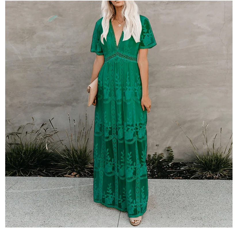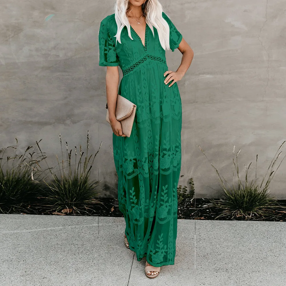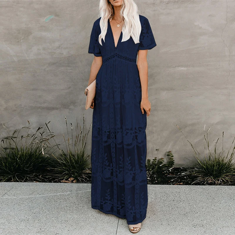 Женское кружевное платье, длинное летнее платье с V-образным вырезо...