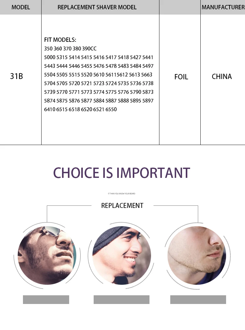 Сменная бритвенная фольга 31B для BRAUN 350 360 370 380 5000 5315 5414 5415 5416 5417 5418 5427 5441