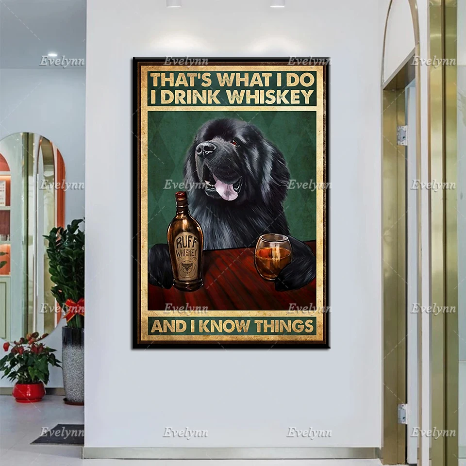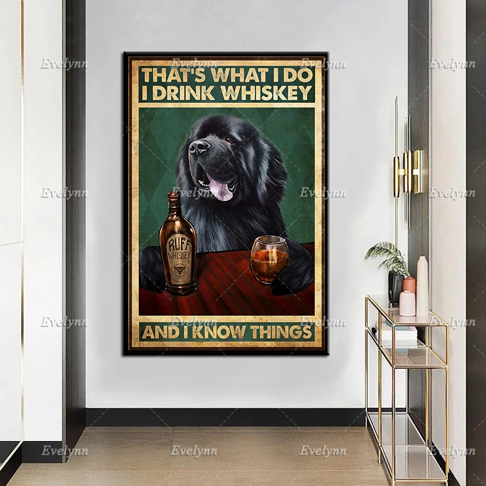 Это то, что я делаю, я пью виски и я знаю вещи, Ретро плакат, принты на стену для любителей собак, домашний декор, холст, уникальный подарок