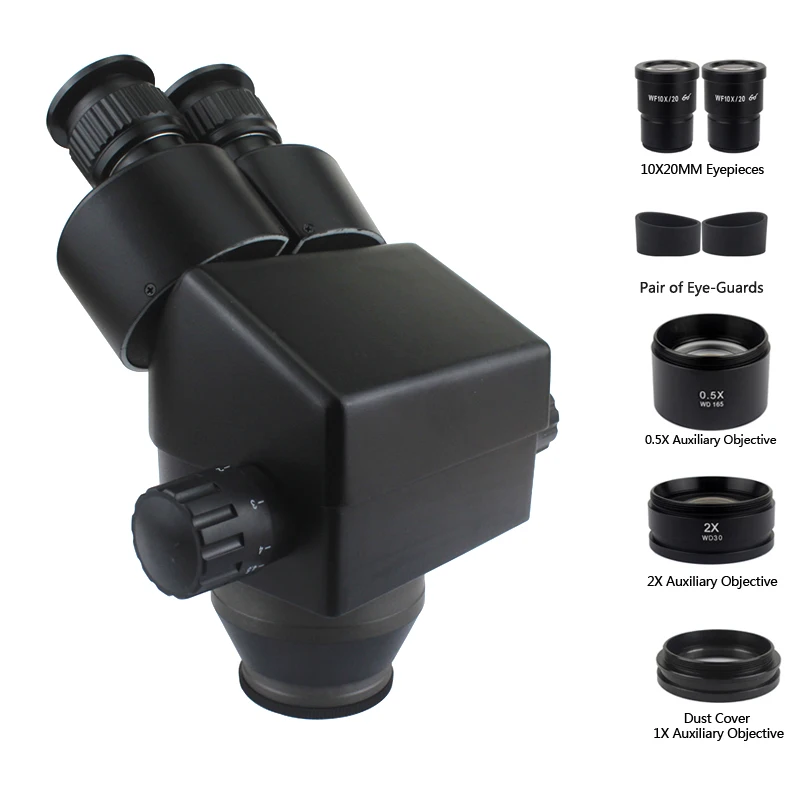 Бинокулярный стереомикроскоп 7-45X, промышленный микроскоп, увеличивающая головка + Вспомогательный объектив WD165 0.5X 2.0X 1X