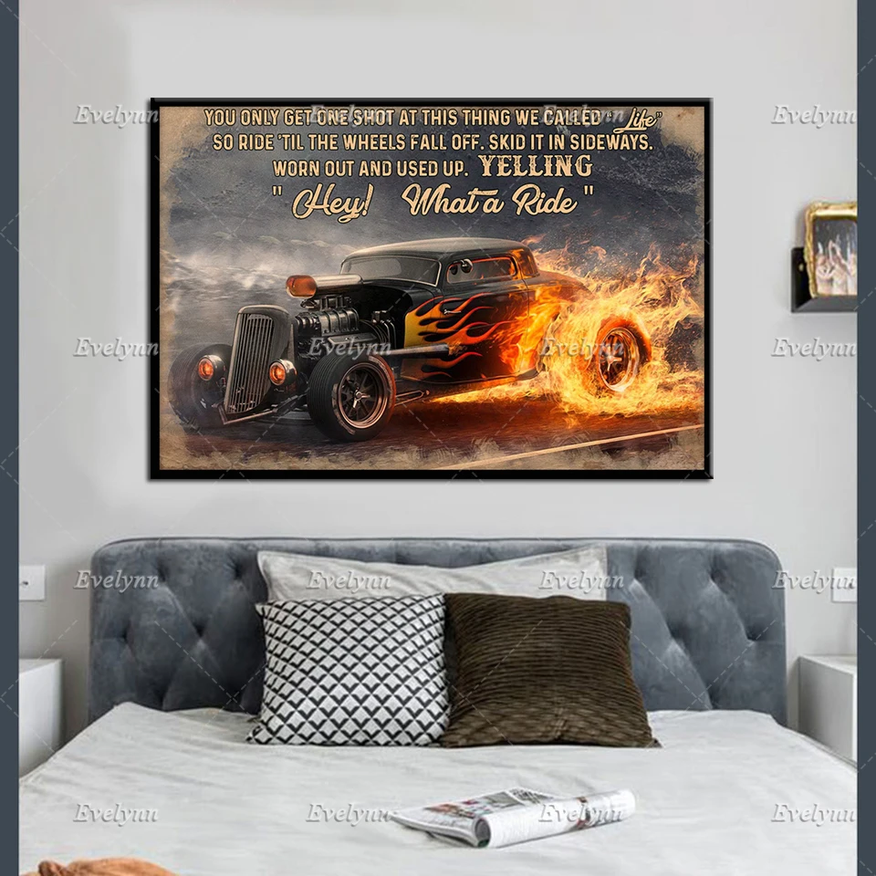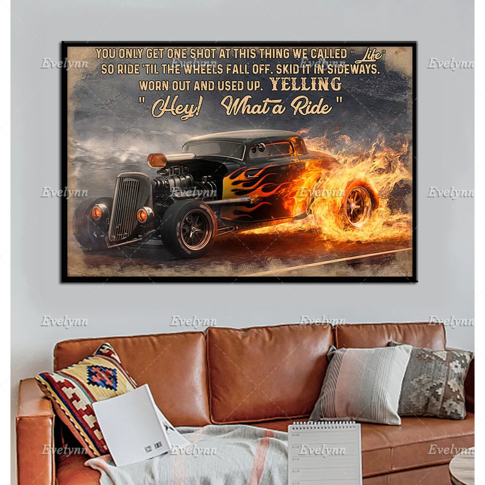 Плакат гоночного гонщика Hot Rod, вы получаете только один снимок на этой вещи, мы называем жизнь, настенные художественные принты, домашний декор, подарок CanvasUnique