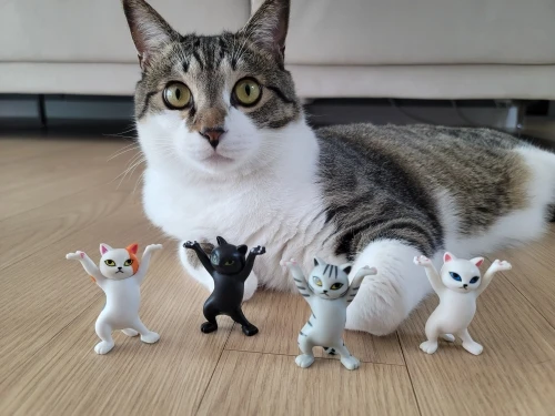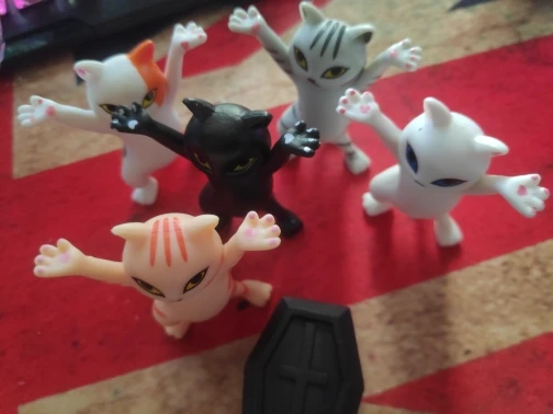 Из 5 котов двое не могут стоять, неправильно приклеены хвосты