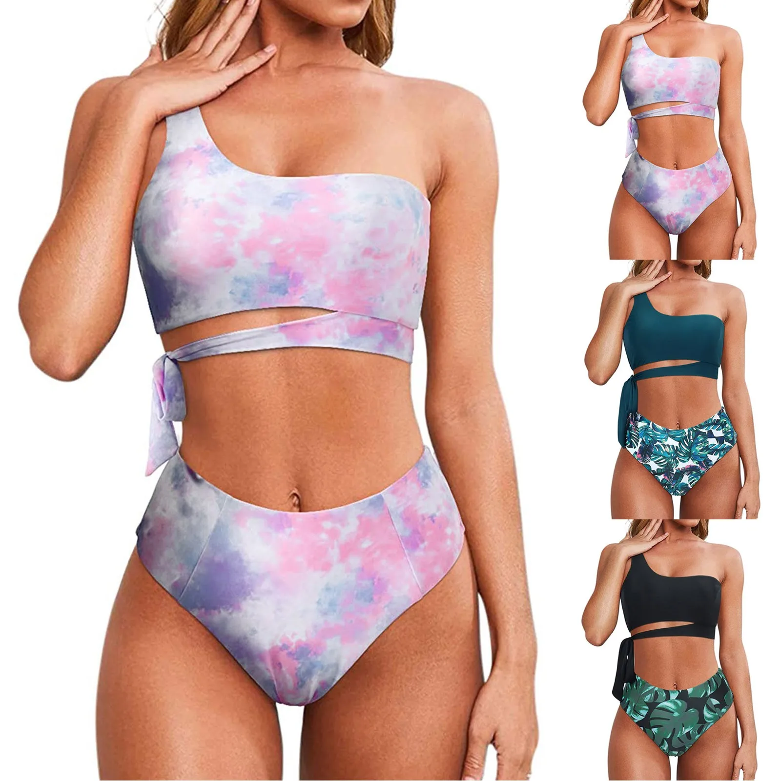 Женский купальный костюм, сексуальный купальник, летний купальник на одно плечо, Женский комплект бикини с пуш-ап, пляжная одежда с высокой талией, купальные костюмы из двух предметов