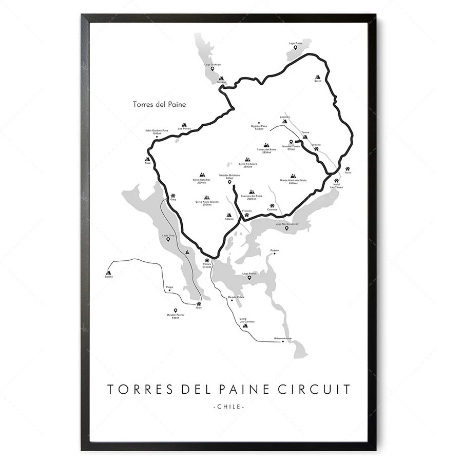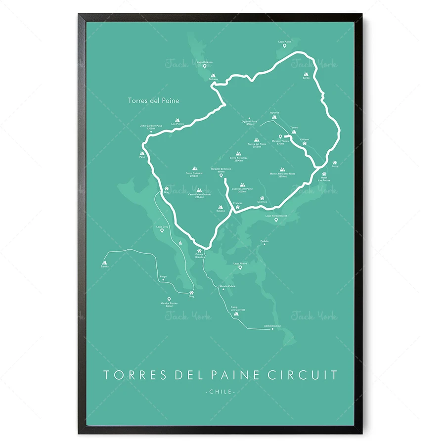 Постер с изображением дороги Торреса дель паина Карта Торреса дель паина Походы Патагонии настенные картины Походы в чили Переживите свои приключения Trai