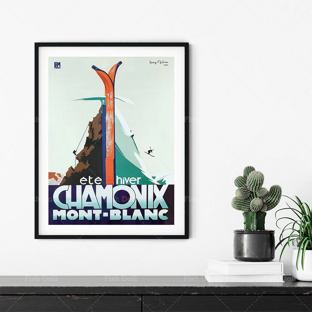 Настенная картина лыжный курорт Chamonix, постер на холсте с изобра...