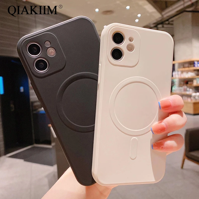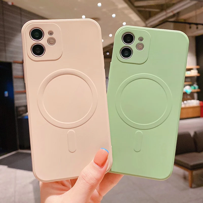 Магнитный силиконовый чехол для iPhone 12 Mini 11 Pro Max XS XR X 8 Plus Magsafe, защитный чехол для объектива камеры с беспроводной зарядкой