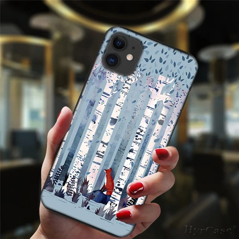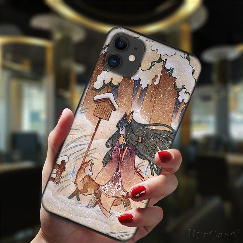 Чехол Birches The Wish Kitsune Fox Deer Yokai для iPhone 11 12 Pro XS Max 6S 8 7 Plus X XR 5S SE 2020 12 мини силиконовый черный чехол