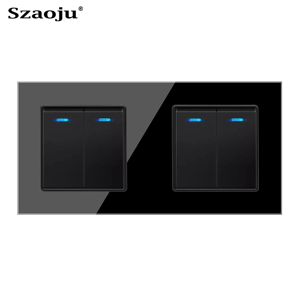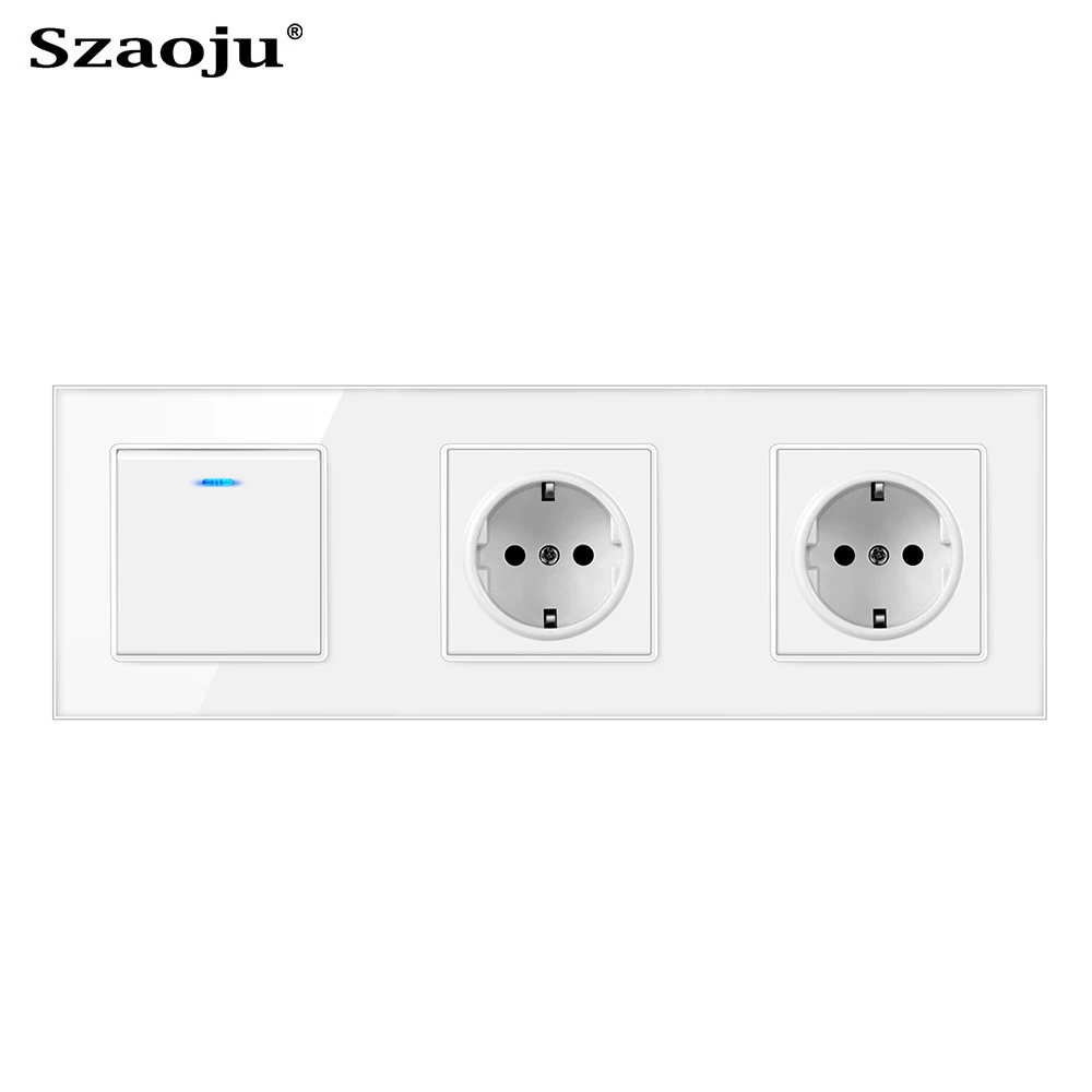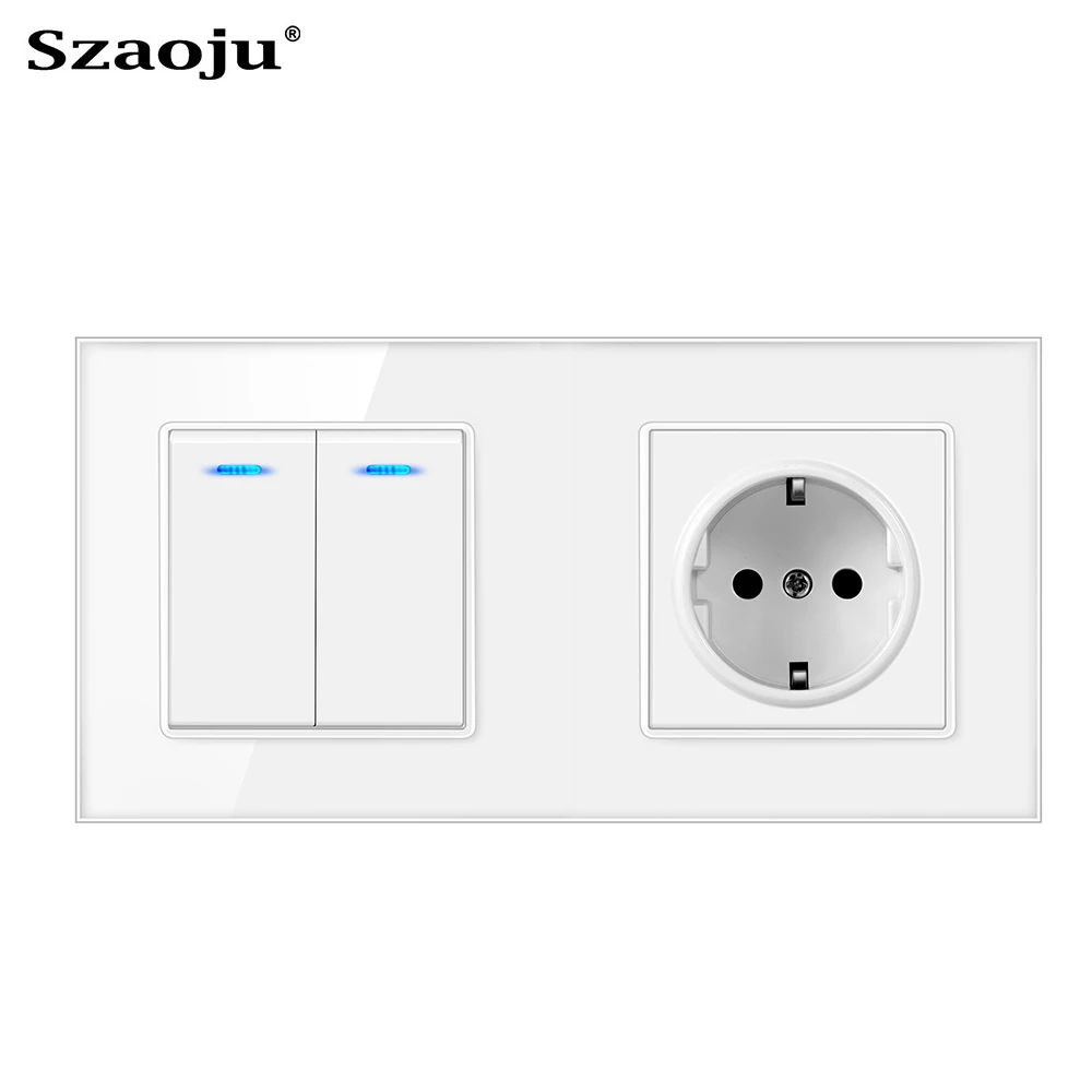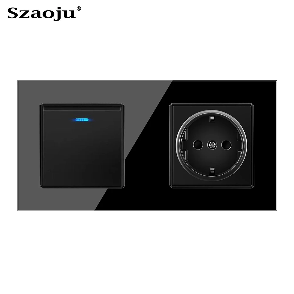Szaoju, кнопочный выключатель света с евророзеткой, белый, черный, белый, настенный выключатель, 123 клавиши, 1 канал, Хрустальная панель светильник