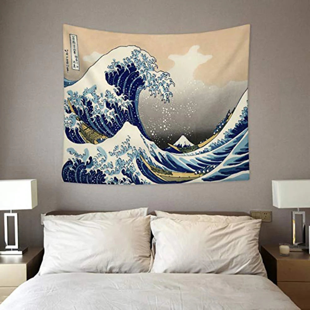 Японский подвесной гобелен Kanagawa с принтом волн, Кит, олень Arowana, настенный подвесной гобелены в стиле бохо, покрывало, одеяло