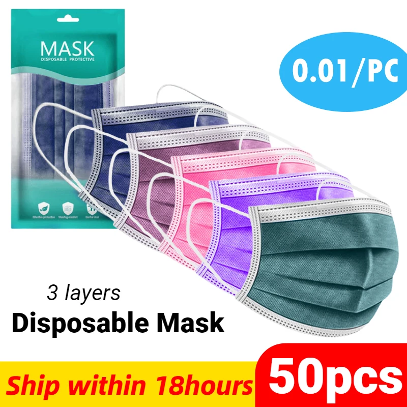 Маска одноразовая 3-слойная для лица 50 шт.100 шт., дышащая модная маска для лица с петлей для ушей, для взрослых