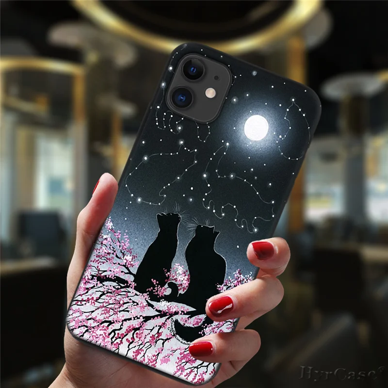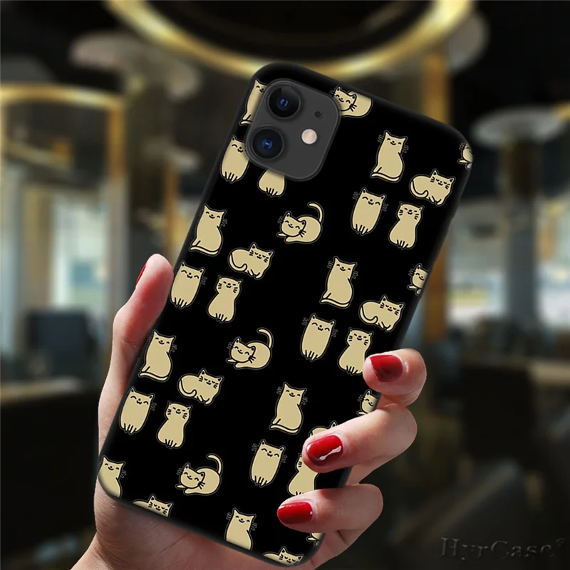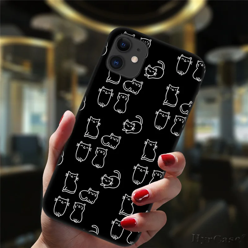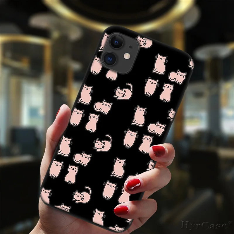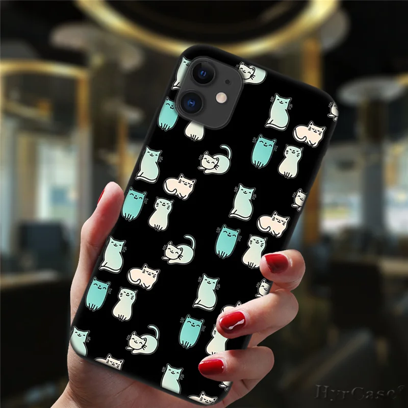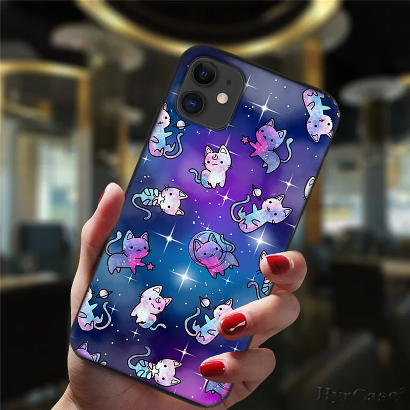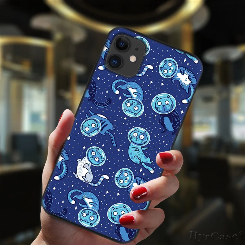Милый чехол для телефона с космосом и счастливыми кошками для iPhone 11, 12 Pro, XS, Max, 6, 6S, 8, 7 Plus, X, XR, фотография, 2020, 12, силиконовый черный мини-чехол с цветочным рисунком