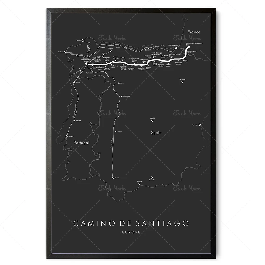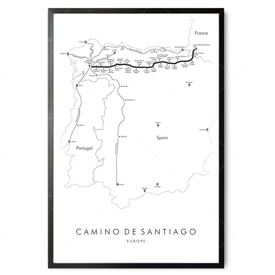 Дорожная карта Сантьяго Дорожная дорожка для пеших прогулок Постер-дорожка из Сантьяго Арт-карта из Сантьяго