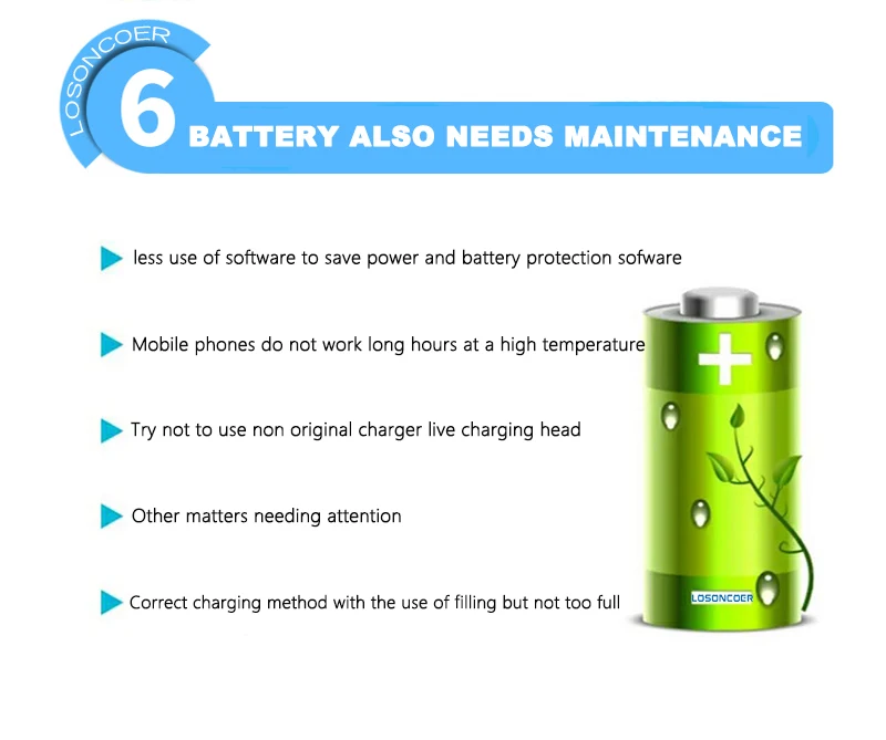 Профессиональная проверка всех батарей LOSONCOER прошла строгую проверку качества перед отправкой: 100% новый и O-цикл, без эффекта памяти, 72 часа испытания на старение, Статика при высокой температуре, И активирует внутренний химический элемент ячейки, обеспечивает стабильность зарядки и разрядки. Поэтому вам не нужно сразу активировать, зарядить или использовать.